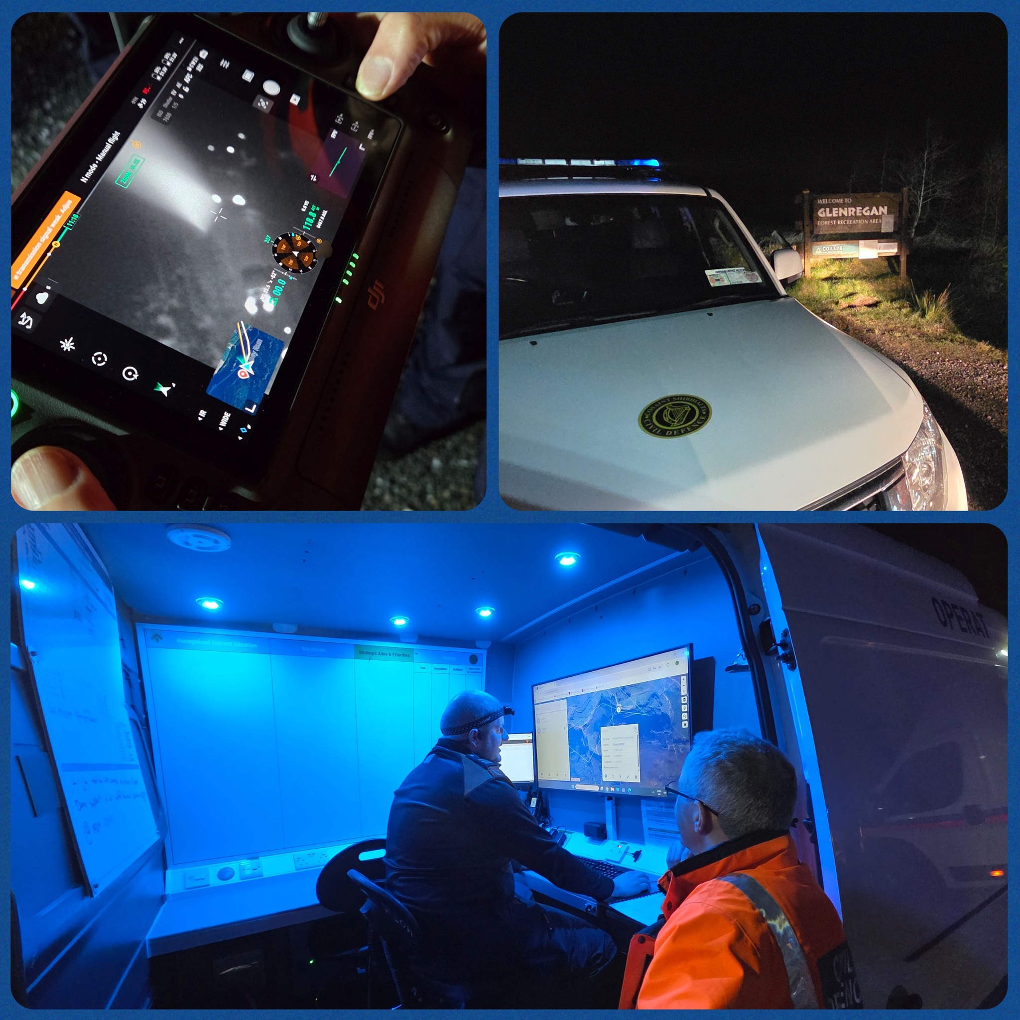 Volunteers from Laois and Offaly Civil Defence Units responded to calls from An Garda Síochána for four missing walkers on the Slieve Blooms. The missing persons were located safe and well by Civil Defence teams and brought back out to safety.